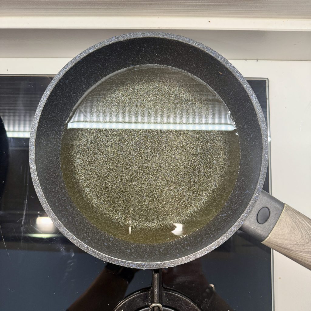 Toma una sartén, preferiblemente con fondo grueso, y calienta el aceite.