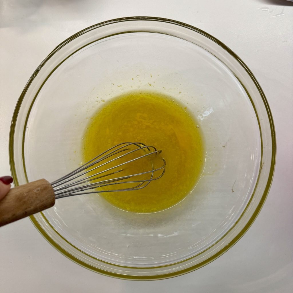 y el aceite. Mezcla enérgicamente con un batidor manual para emulsionar los ingredientes.