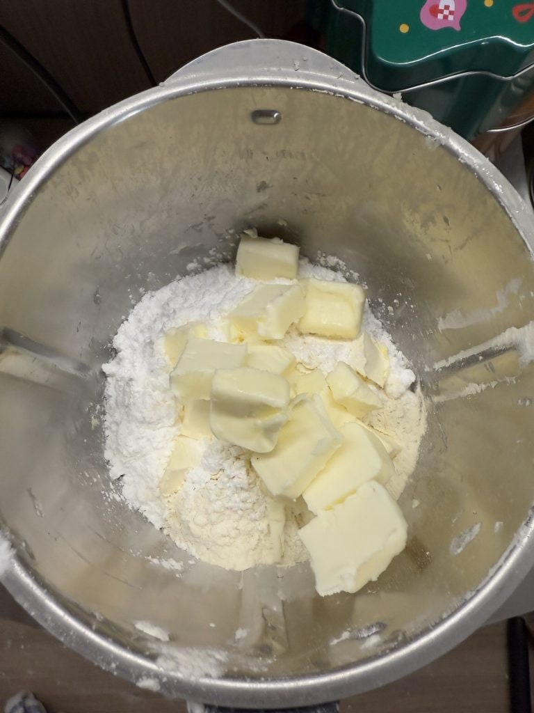 Corta la mantequilla en trozos y añádela a los demás ingredientes.