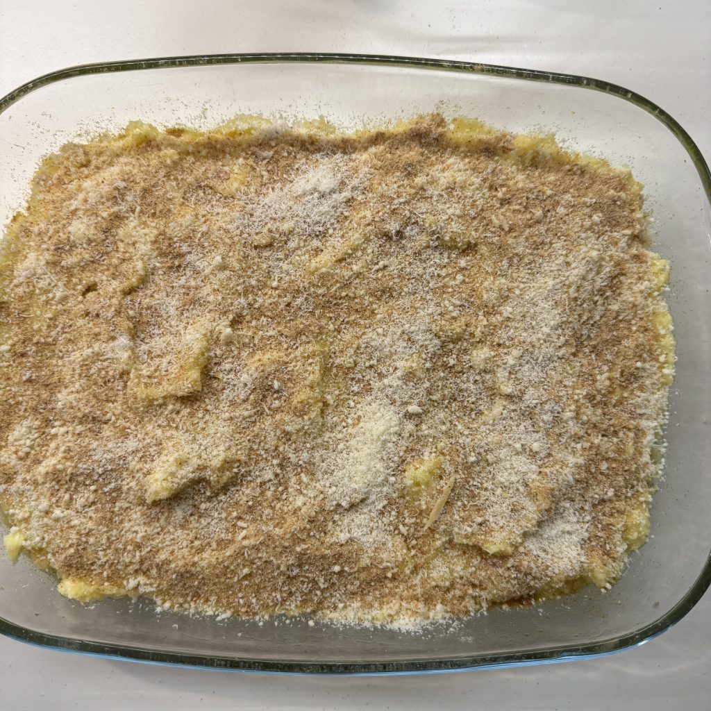 La receta que os voy a dar es la de familia, la receta que me enseñó mi madre: nosotros la preferimos menos compacta y no demasiado gruesa, y además, para formar en la superficie una costra dorada súper atractiva, pongo algunos trocitos de mantequilla aquí y allá que hacen que la gratinación sea aún mejor.