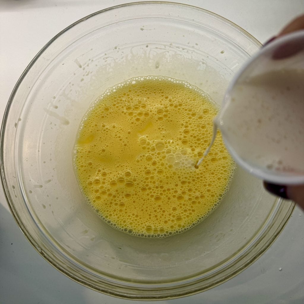 Añade también la leche y mezcla.