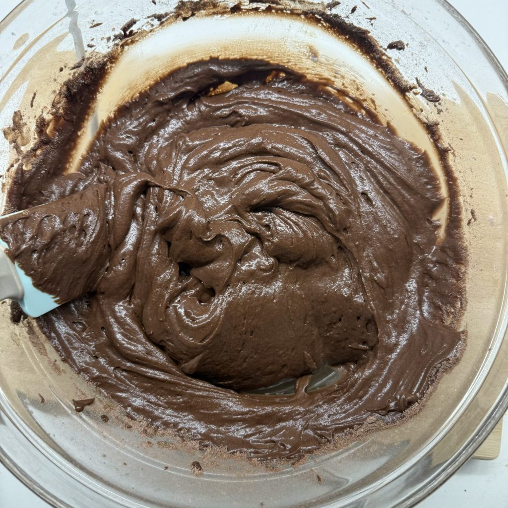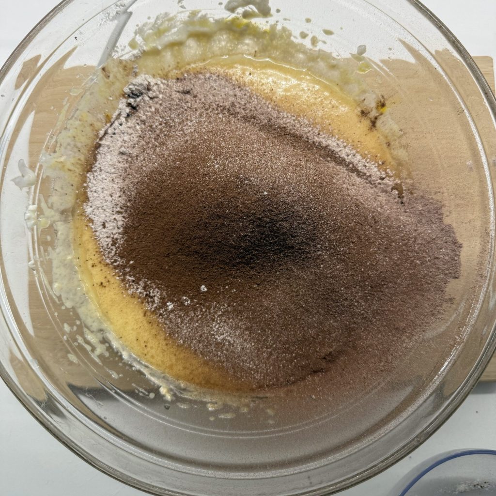 Añade también los ingredientes secos tamizados (harina, cacao, levadura y vainillina): 1 min vel 3-4.