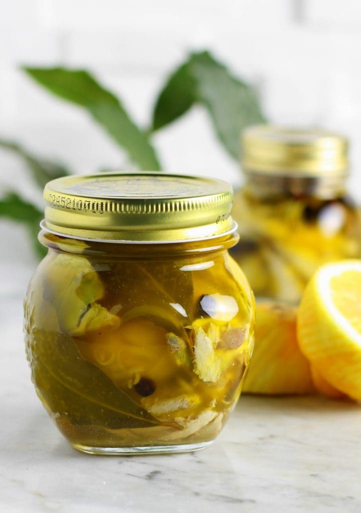 Transcurrido todo el tiempo necesario, solo queda embasar. Colocamos los primeros filetes de caballa en el fondo del tarro de vidrio, vertemos el aceite de oliva virgen extra necesario, añadimos las cáscaras de limón y terminamos con las bayas de enebro. Seguimos de esta manera hasta llenar todo el tarro, completándolo con el aceite hasta el borde.