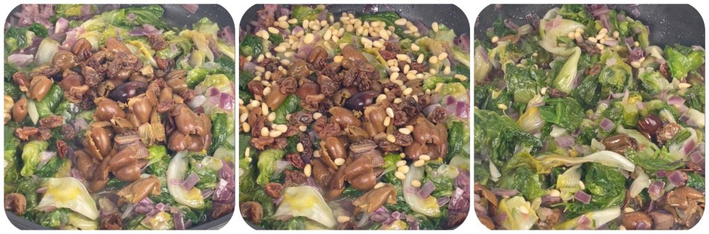 Achicoria salteada con pasas y piñones