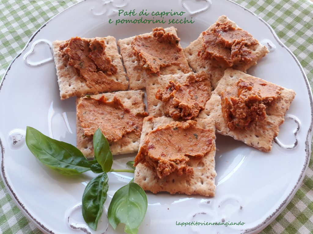 Sirvan untando el Paté de queso de cabra y tomates secos en galletas saladas o rebanadas de pan tostado.