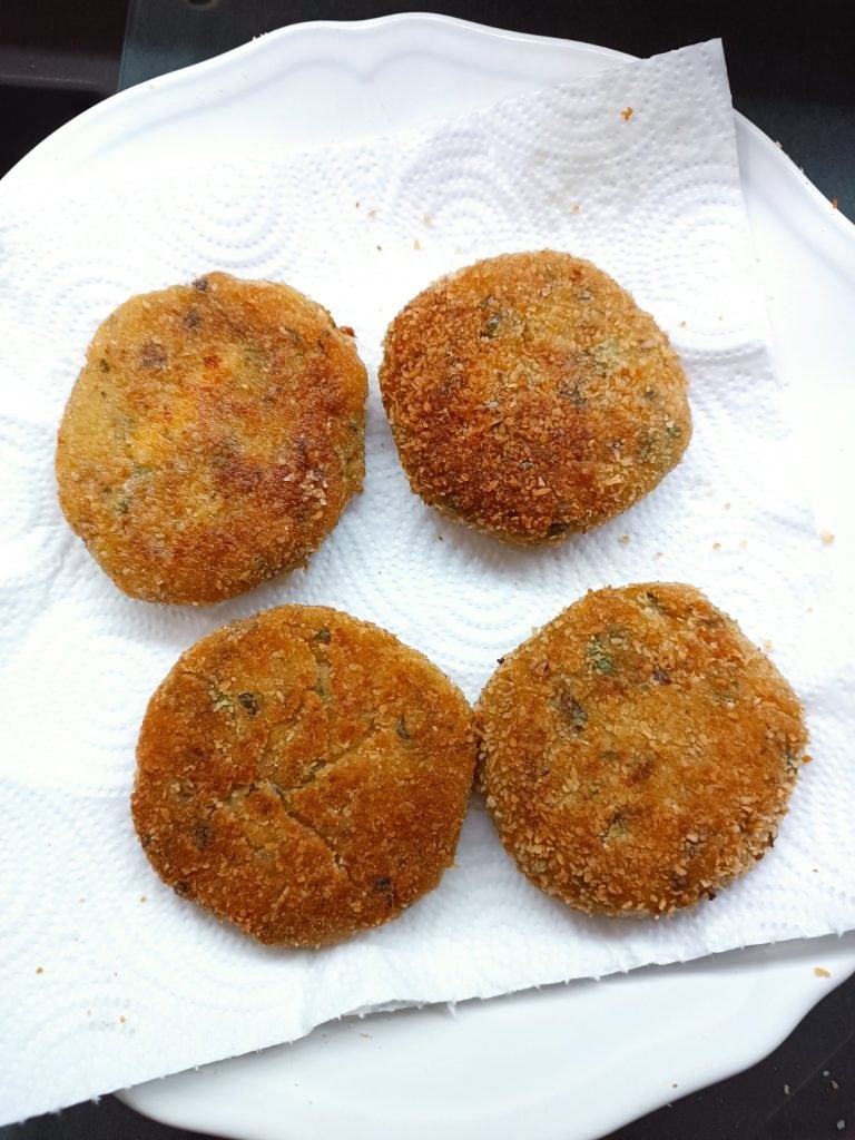Pon a calentar el aceite de semillas en una sartén y cuando haya alcanzado la temperatura adecuada, fríe las albóndigas de patatas y calabacines. Cocínalas por ambos lados y luego colócalas en un plato con papel absorbente.