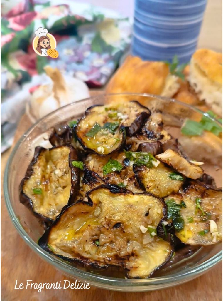 Las berenjenas a la parrilla y marinadas son una guarnición ligera y aromática, perfecta para el verano, como los calabacines a la parrilla en salsa, o los pimientos en sartén. Después de asarlas, para darles sabor las marino con una mezcla a base de aceite de oliva virgen extra, ajo, perejil, albahaca y vinagre: una mezcla irresistible que las hace suaves, pero sobre todo muy sabrosas.