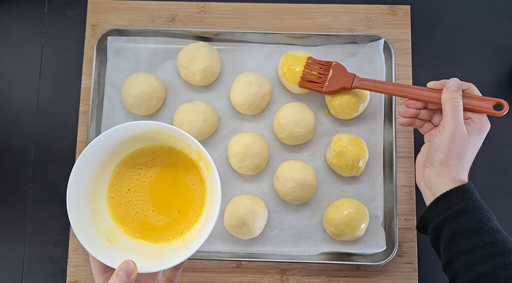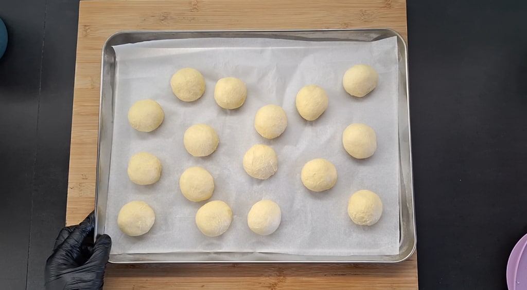 • Desinfla suavemente la masa y divídela en bolitas de 40 g.