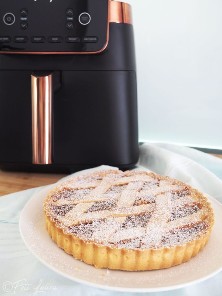 Tarta con freidora de aire al lado