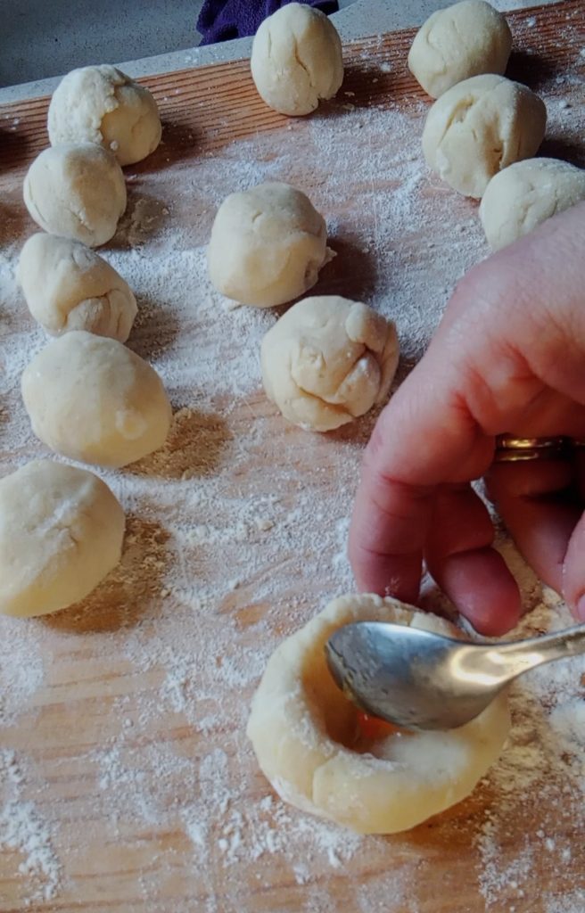 • Cortar la masa en trocitos y formar bolas más o menos del mismo tamaño. Deberán salir unas treinta bolas.