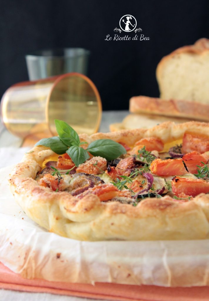 Variaciones de la receta: obviamente podréis usar tanto las verduras que he elegido yo como variarlas. Pensad, por ejemplo, en los pimientos, si os gustan, por su bonito color. Podréis añadir pimientos rojos o amarillos. Si no coméis alguna de las verduras que yo he usado, sustituidla por la que más os guste. Si queréis una versión más rica de esta tarta de hojaldre, podréis añadir ricotta o dados de queso. También podéis optar por dados de speck o de jamón cocido. En definitiva, dejad volar la imaginación y cread siempre nuevas combinaciones. Al fin y al cabo, ¡toda tarta salada está buena, verdad?!?