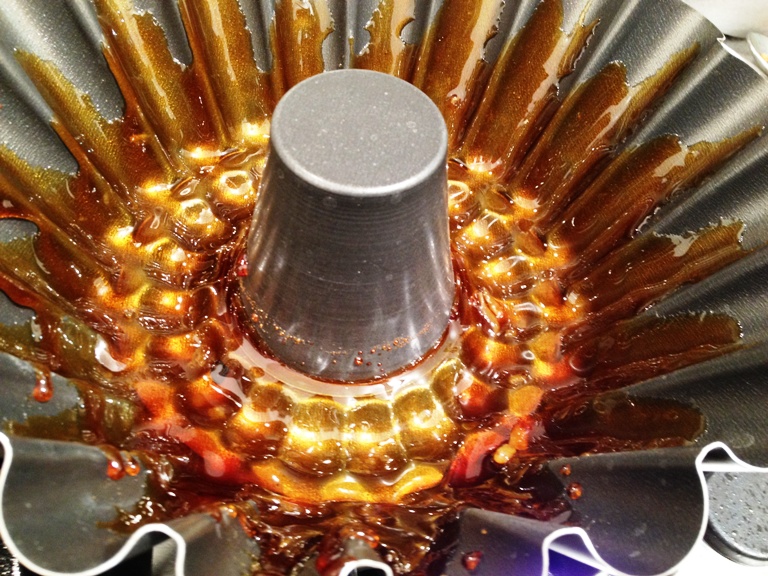 Cuando esté listo, vierta el caramelo en el molde y distribúyelo lo más uniformemente posible a lo largo de las paredes.