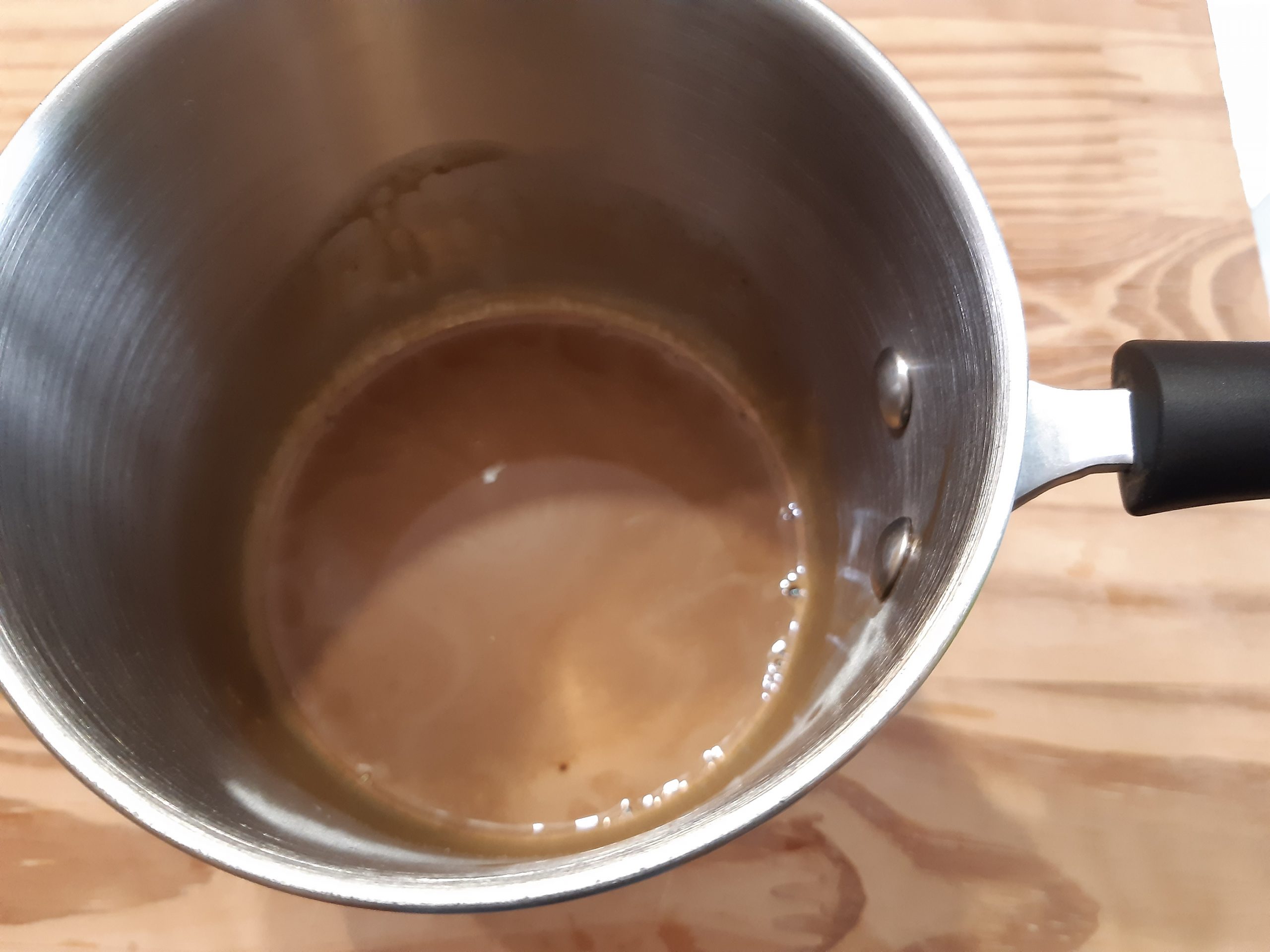 • Tomamos del total de nata no montada 50 gramos, la calentamos al fuego sin dejar que llegue a ebullición.