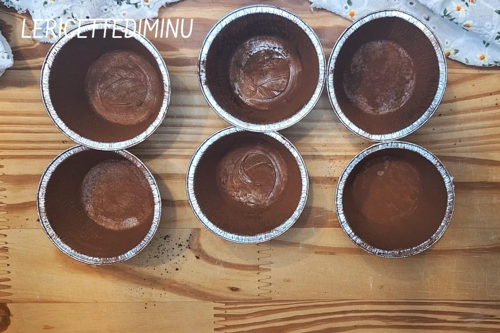 • Para preparar los coulants de chocolate, comienza enmantecando seis moldes de aluminio y espolvoreándolos con cacao amargo.