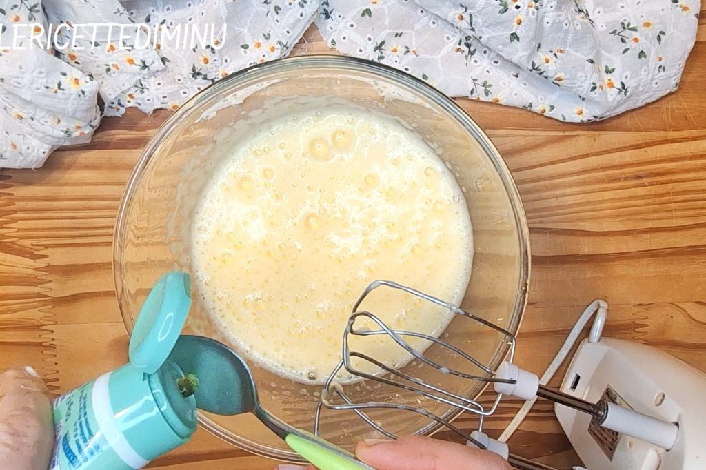 • Aparte, mezcla los huevos y el azúcar con las batidoras eléctricas hasta obtener una mezcla espumosa.