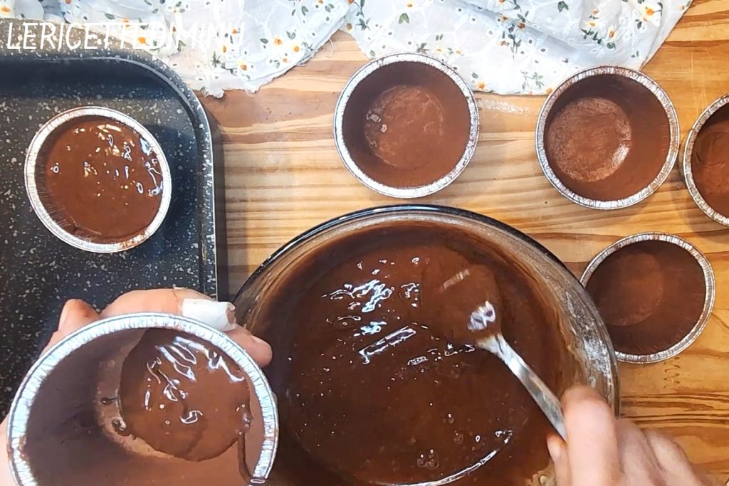 • Llena con la mezcla obtenida los moldes hasta medio centímetro bajo el borde.