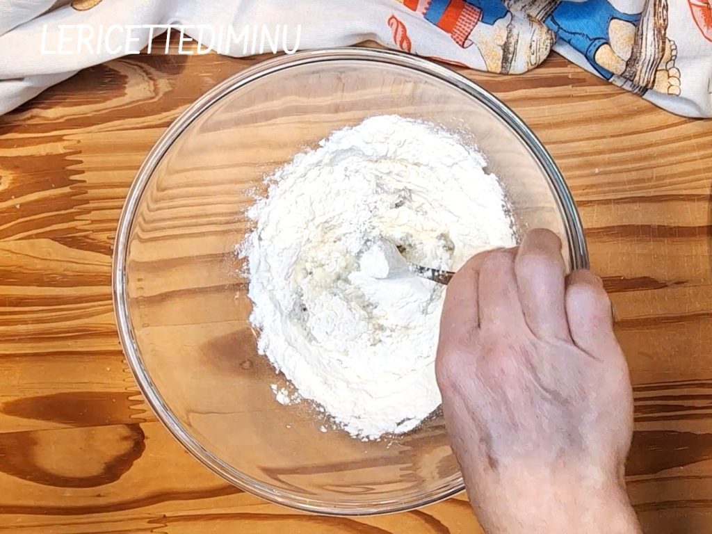 Aparte, crear una mezcla batiendo con un tenedor 6 claras de huevo con 100 gramos de harina 00.