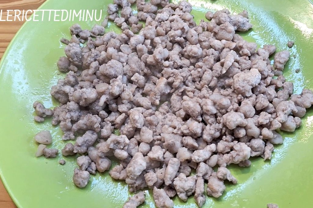 En una sartén caliente, cocinar la salchicha sin piel o la carne picada de cerdo sazonada, sin añadir aceite.