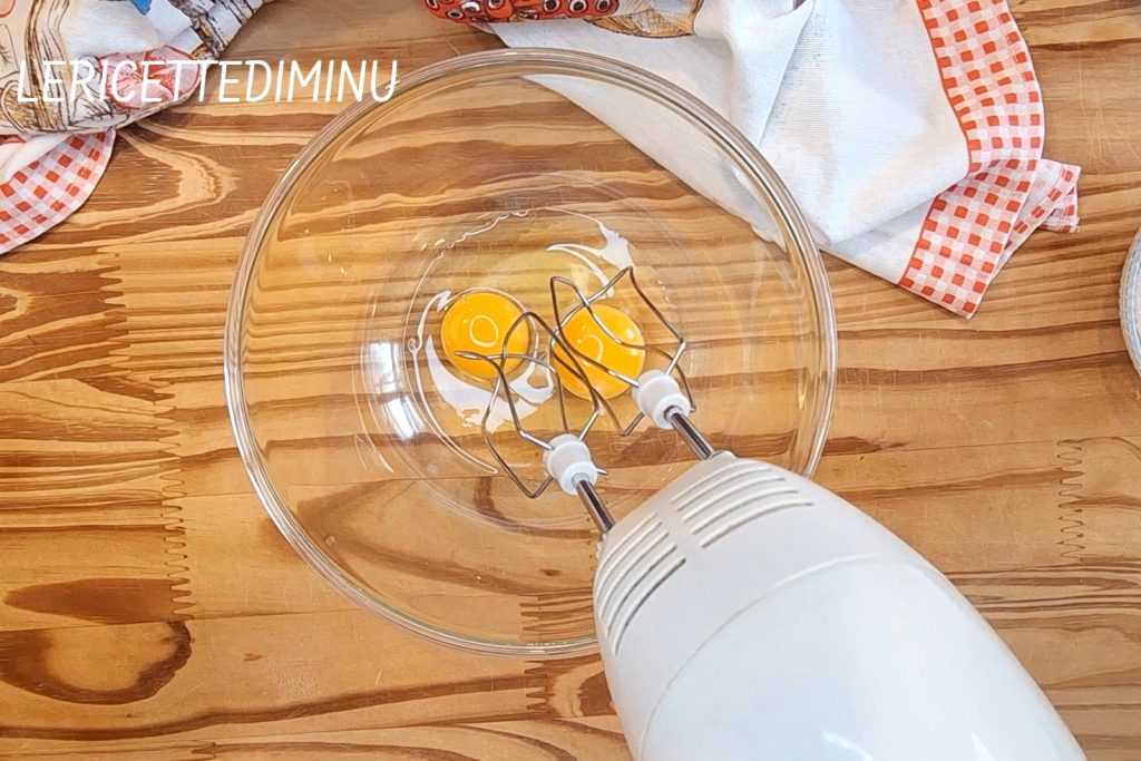 Trabajar los huevos con la batidora eléctrica hasta que hayan incorporado aire y estén un poco inflados.