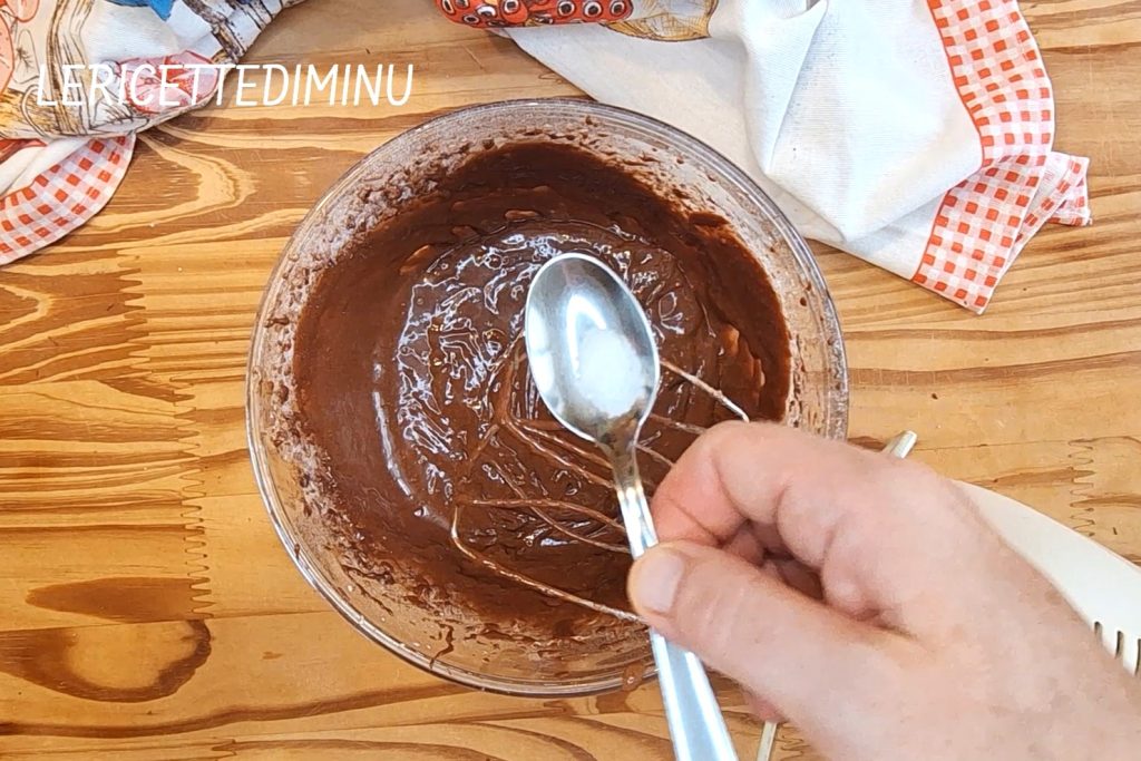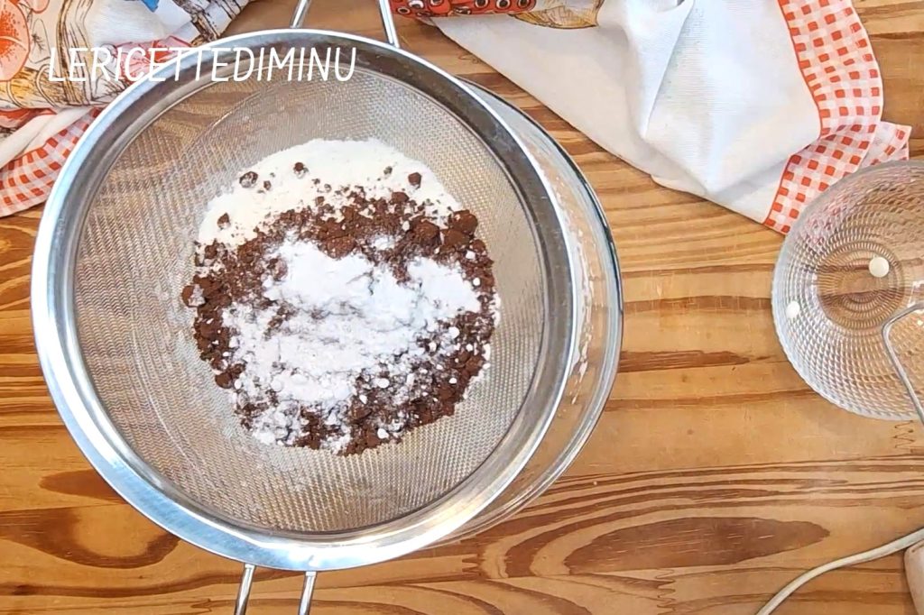 Poco a poco, unir la harina tamizada con la levadura y el cacao amargo.