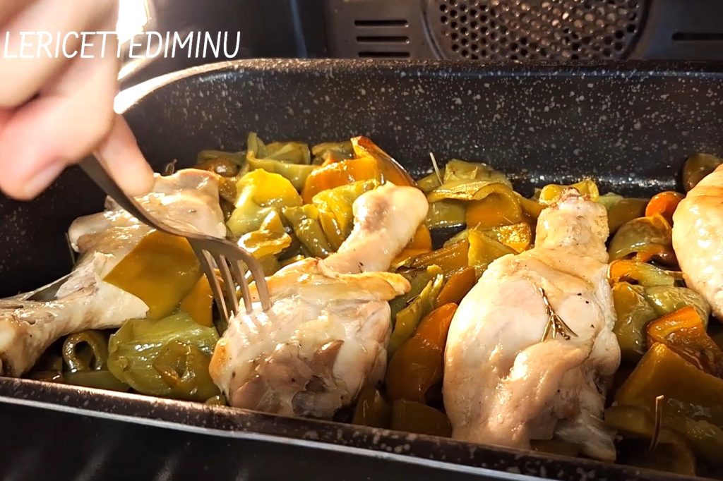 Bastará con comprar muslos de pollo y pimientos y con algunos otros ingredientes que siempre tenemos en casa y siguiendo un sencillo procedimiento, en poco tiempo habremos resuelto el almuerzo o la cena. Un plato tan bueno, pero absolutamente no pesado. Esto gracias a una rápida cocción inicial del pollo y a la posterior cocción en horno.