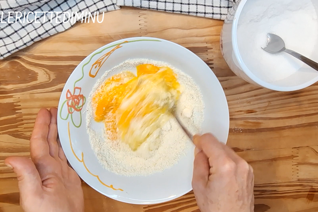Luego unir 2 huevos en rodajas, 2 cucharadas de pecorino o parmesano rallado, el jamón deshilachado dejando un poco para rellenar la capa central de la pasta.