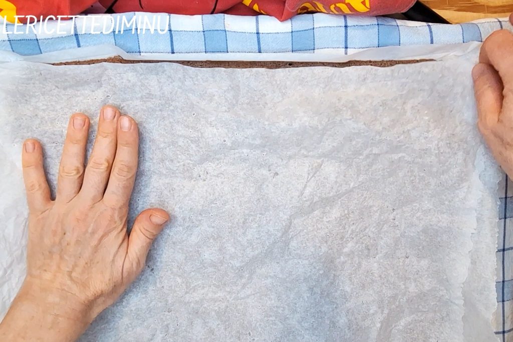• La pasta bizcocho de chocolate para rollo está así lista.