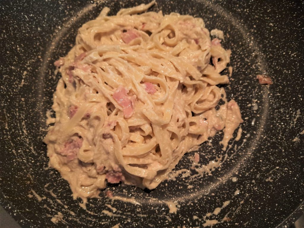 La pasta con pesto de nueces con jamón sin leche está así lista.