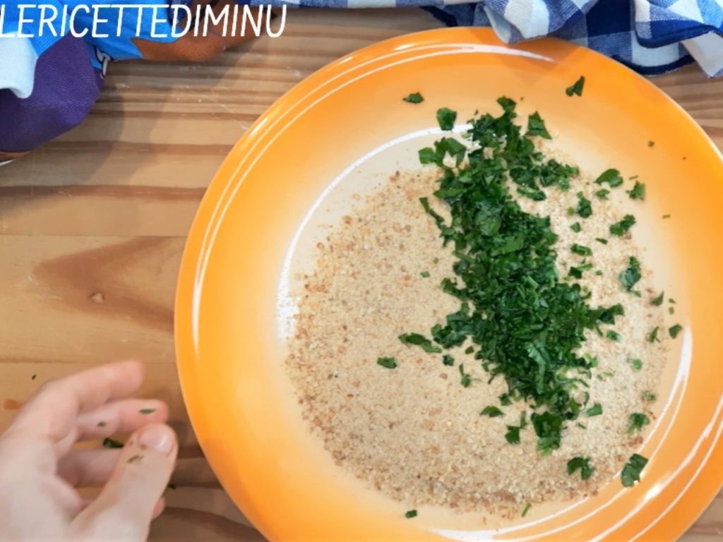 Para preparar el pez espada al horno con rebozado de aroma de limón, comienza por sazonar el pan rallado con parmesano o grana rallado, perejil picado, cáscara rallada de un limón lavado y no tratado, sal fina y si se desea, una pizca de pimienta negra.