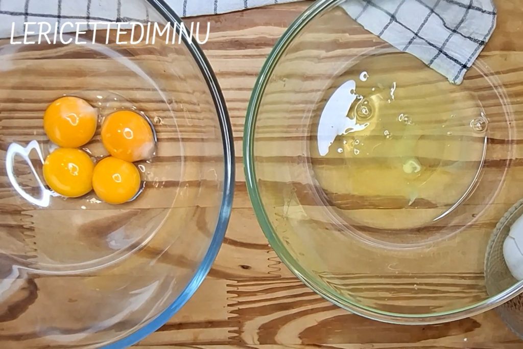 • En dos cuencos, separar las claras de las yemas.