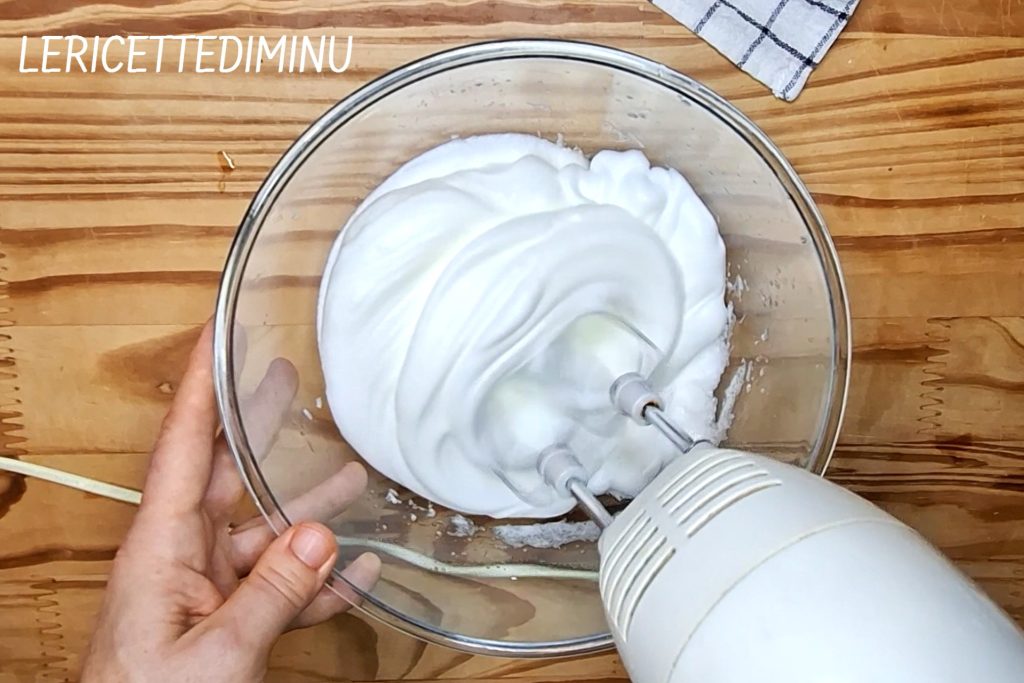 • Con la batidora eléctrica montar las claras a punto de nieve.
