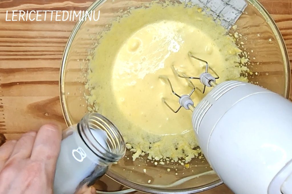 • Al final añadiremos la sal y después de haberla bien mezclado, verteremos dentro los trocitos de chocolate
