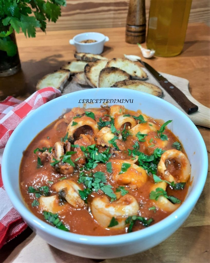 Cuando la salsa empiece a oler a cocido, añadir los calamares y cocinarlos durante unos 10 minutos, dándoles la vuelta de vez en cuando.