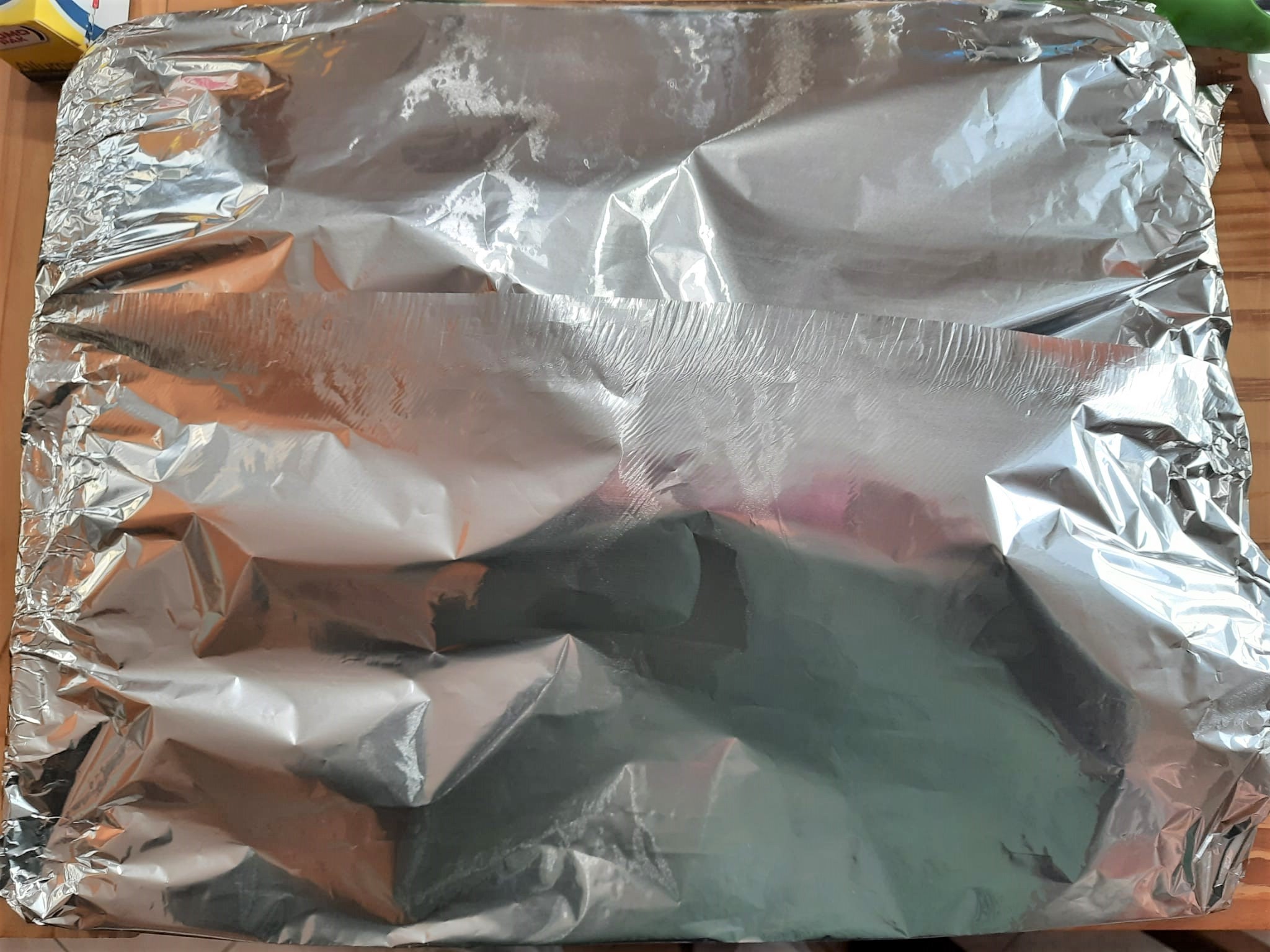 Retire la cobertura y vuelva a poner la bandeja en el horno, en función ventilada durante unos 5 minutos o hasta que alcance el grado de dorado deseado.