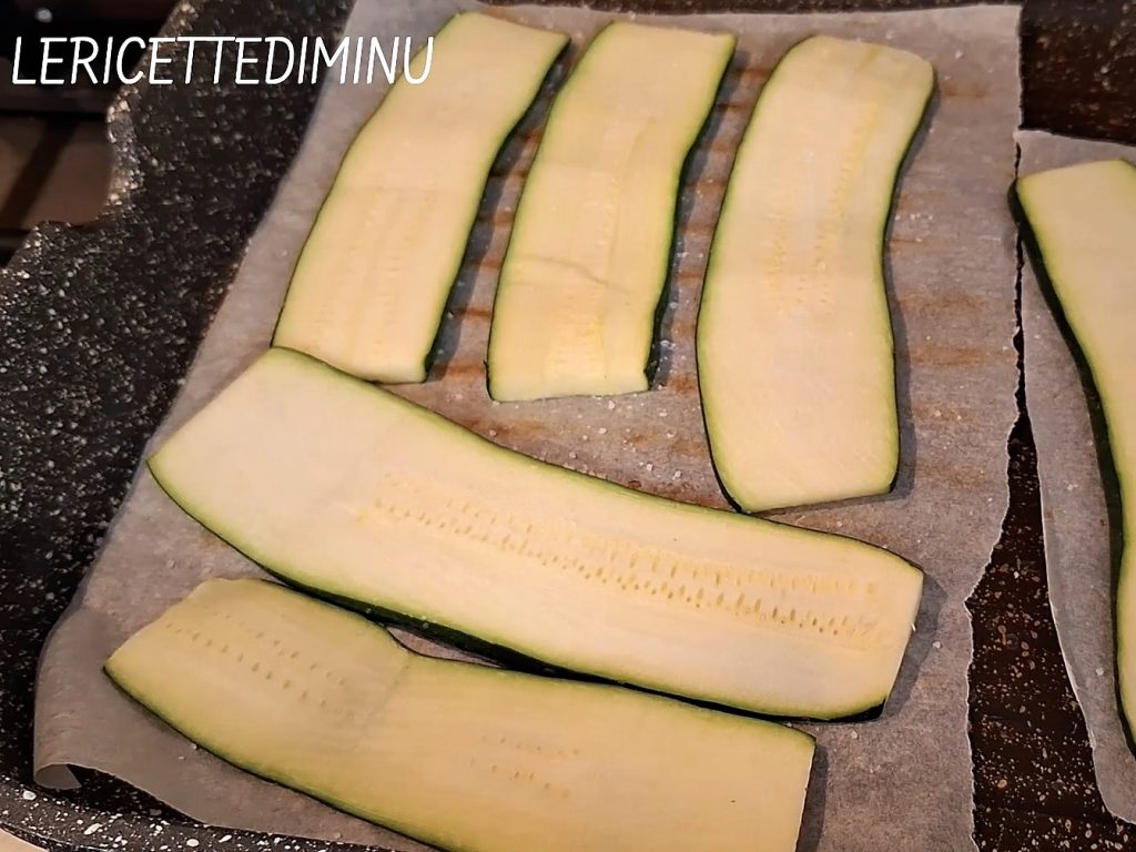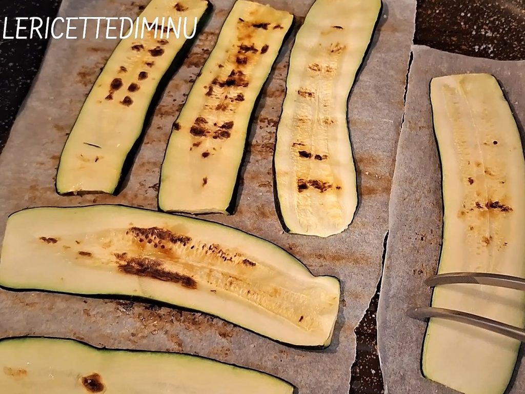 • Poner una plancha antiadherente al fuego para calentar y cuando esté bien caliente, asar las rodajas de calabacín.