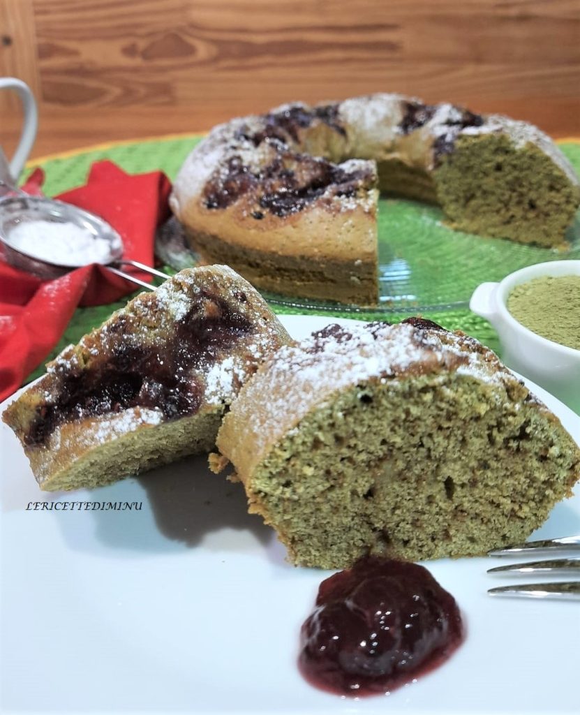 Rosca de té matcha con mermelada de frutos del bosque