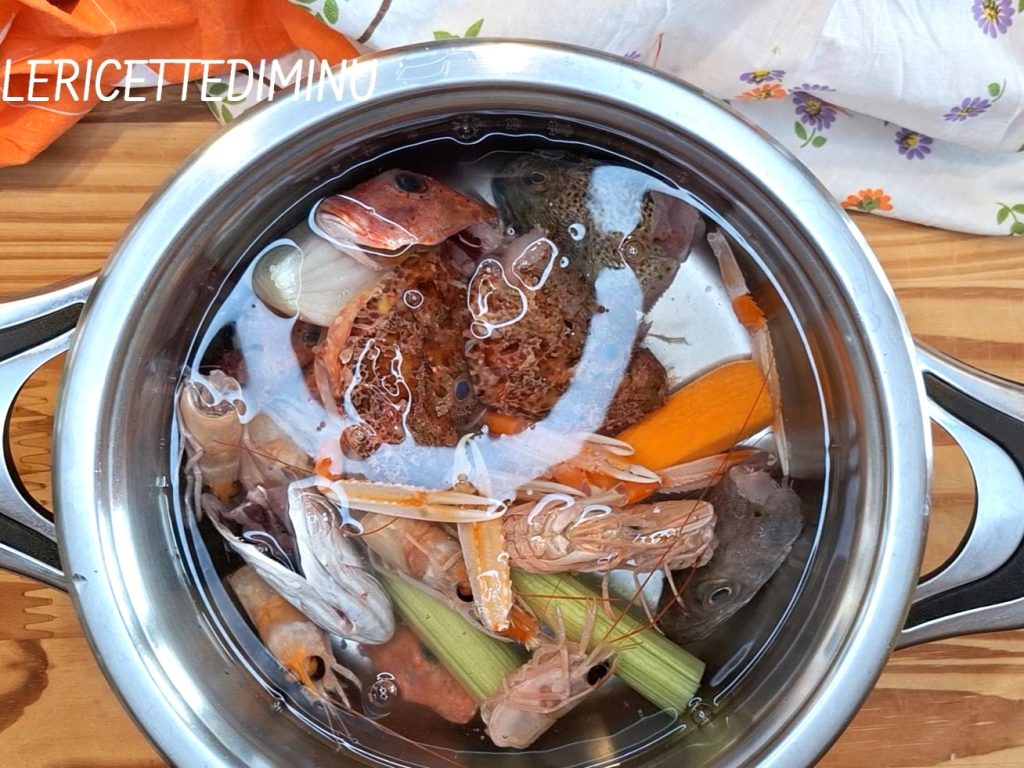 Para conferir a esta sopa todo el inconfundible aroma del mar, se le añade, mientras está en cocción, un fumet de pescado realizado con los desechos de los pescados utilizados.