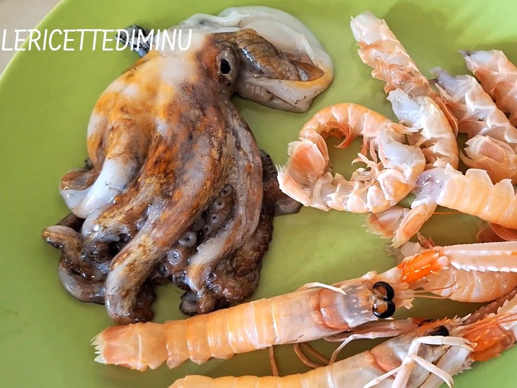En este punto, coloque en la sartén los rascacios, las merluzas, el pez araña y el pulpo.