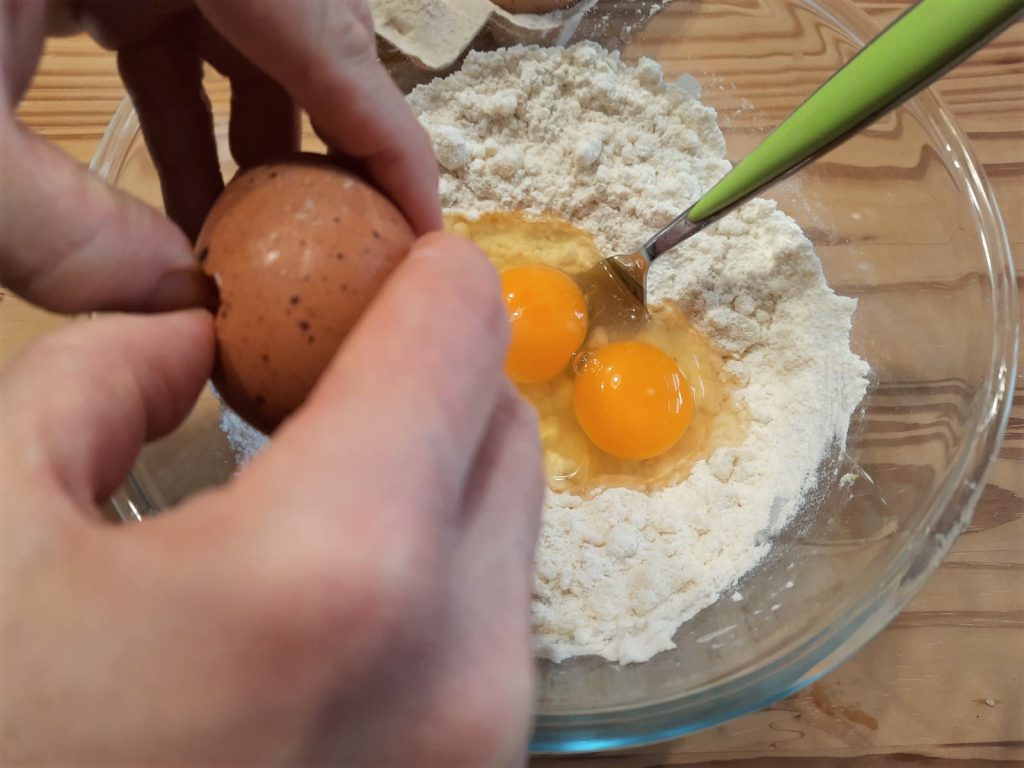 Añade luego los huevos comenzando a trabajar con las batidoras eléctricas con los ganchos para masas duras o en la amasadora.