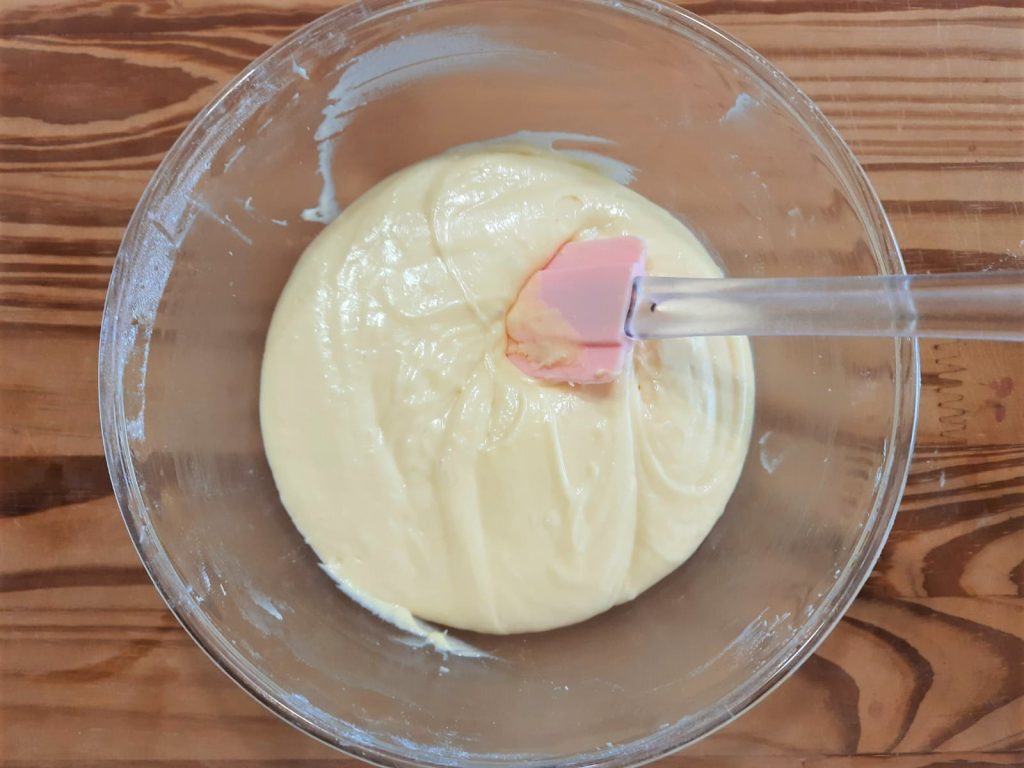 Incorporar la mantequilla en hilo mientras se sigue batiendo.