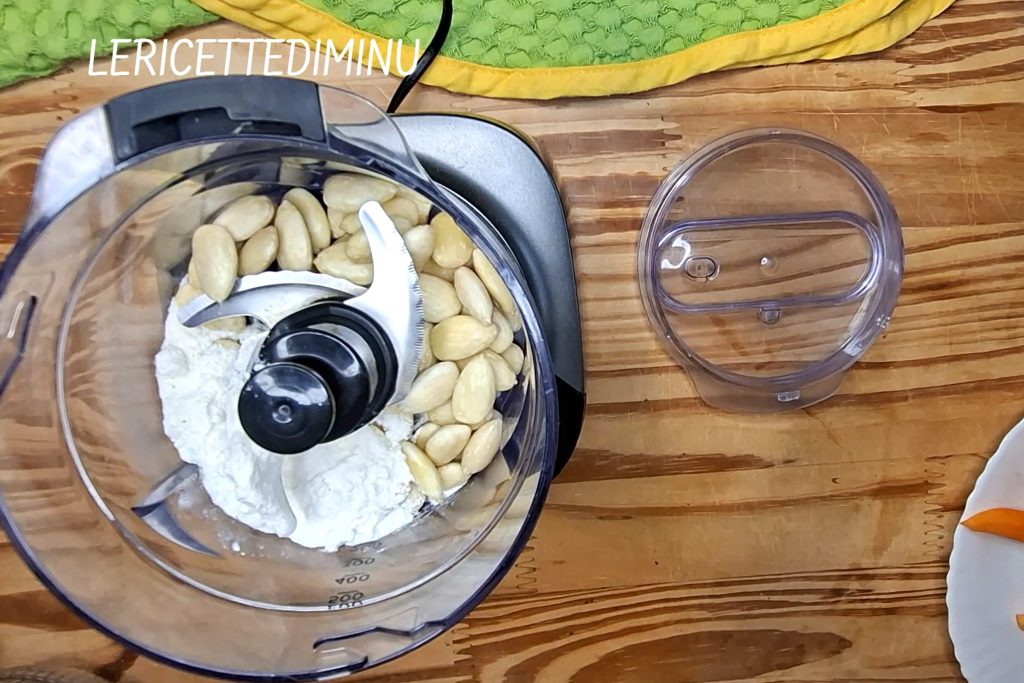 Cuando se haya obtenido una mezcla homogénea, añadir las almendras trituradas y las zanahorias picadas. Remover bien.