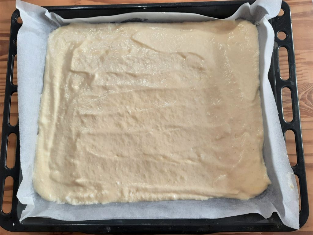 Añadir poco a poco a esto, la harina tamizada con la levadura e incorporar con las batidoras eléctricas. Agregar a la mezcla las claras, mezclando con movimientos de abajo hacia arriba con un lamedor de ollas de silicona.