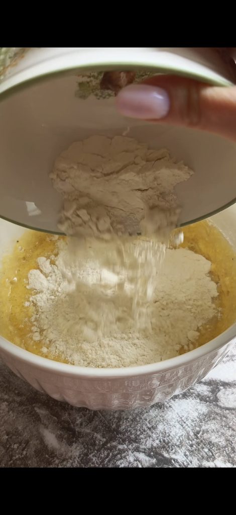 Tamizad la harina con la levadura química e incorporadlas a la mezcla removiendo con una espátula.