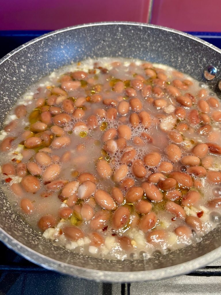 Las alubias estilo vaquero son un plato sencillo y rápido, pero increíblemente sabroso, gracias al condimento a base de ajo, aceite, guindilla y romero. El nombre parece derivar del hecho de que, para la preparación, se utilizan alubias enlatadas con su líquido de conservación, tal como los vaqueros, que necesitaban alimentos de larga conservación para llevar consigo. Personalmente, creo que la verdadera razón del nombre reside en el condimento decidido, picante y rico en sabor. Si se acompañan con pan tostado, estas alubias son un plato tan simple como delicioso, que también puede ser un excelente plato único.