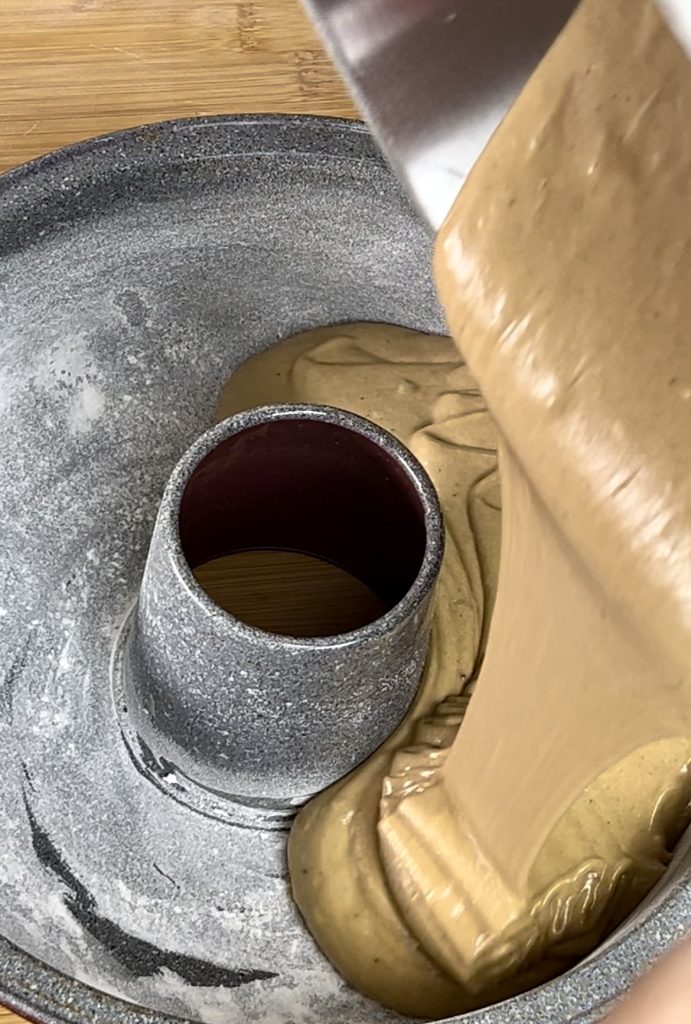 Unta con mantequilla y enharina un molde para bizcocho, con un diámetro de 26/28 cm. Vierte la mezcla en el molde de manera uniforme y golpea ligeramente el molde sobre la mesa para eliminar cualquier burbuja de aire que pueda formarse durante la preparación.