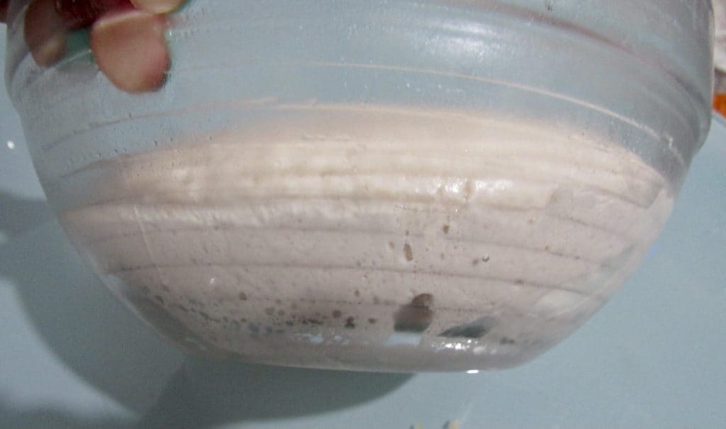 Dejar levar en lugar sin corrientes de aire, yo siempre prefiero el horno apagado hasta el doble, a mí me llevó unas 7 horas para obtener la masa como ves en la foto, con la levadura de cerveza llevará unas 3 horas. Puedes acelerar la fermentación usando una cámara de fermentación a 40º o bien ralentizarla según tus compromisos haciendo levar la masa en el frigorífico.