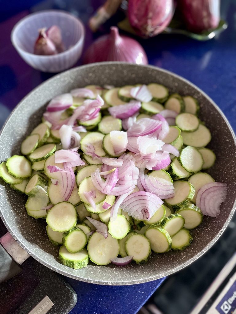La preparación de los calabacines en sartén requiere pocos minutos y los ingredientes deben ser añadidos todos a la vez.