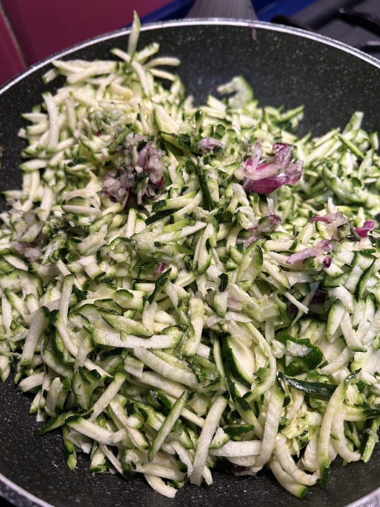 La preparación es realmente sencilla: comienza limpiando los calabacines, cortando los extremos, lavándolos bien bajo agua corriente y cortándolos en juliana. Puedes hacerlo con un rallador a mano o, para mayor rapidez, usar un robot de cocina con la cuchilla adecuada. Coloca los calabacines en una sartén, añade la cebolla finamente picada, sal, guindilla y un chorrito de aceite. Cubre con la tapa y cocina a fuego alto durante unos 5 minutos, girando de vez en cuando para evitar que se peguen. Luego, baja el fuego y continúa la cocción hasta el punto de cocción deseado, pero sin superar los 15 minutos en total para evitar que se sequen demasiado.