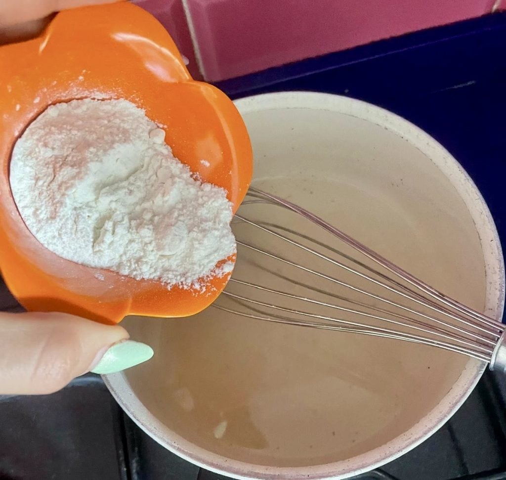 Deja cocer durante un par de minutos, continuando a mezclar, hasta que la crema comience a espesar.
