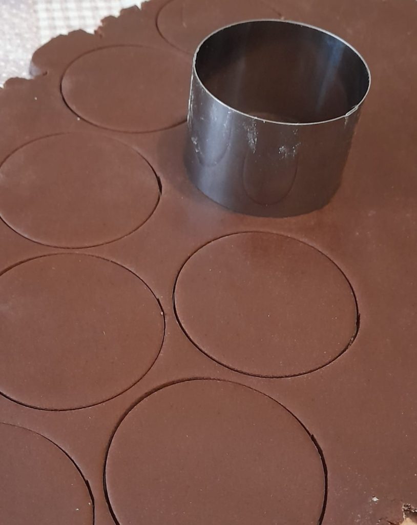 • Tomamos nuestra masa quebrada de cacao y la extendemos en una capa delgada, de pocos milímetros, para que las galletas queden crujientes y desmenuzables en su punto justo.